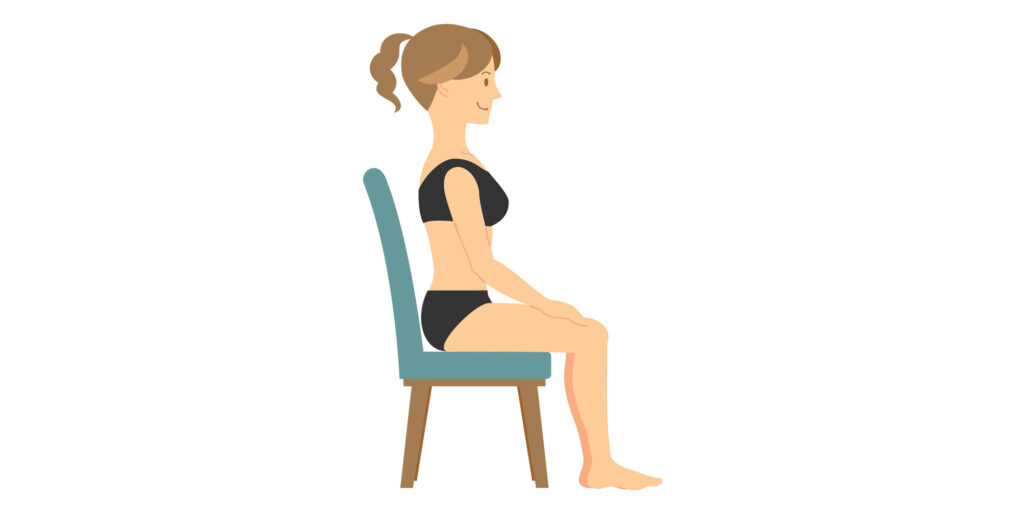 写真のように椅子に浅めに座り、両脚は握り拳2個分程度に開きます。